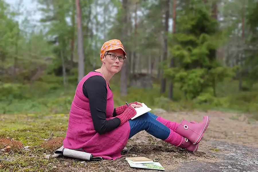 Elän uusperhe-elämää ja sain arvonimen Mummi elokuussa 2023 ja nyt minulla on jo kaksi lastenlasta. Olen erä(maa)jorma ja pyrin tekemään vuosittain tunturivaelluksen - ja taskussani kulkee mukana lyijykynä ja kirjoitusvihko. Ohjaajana minulle on tärkeää ammentaa harjoituksiin inspiraatiota luonnosta ja viedä välillä kirjaimellisestikin osallistujia kirjoituspolulle. Etäohjauksessakin haluan käyttää luonnon elementtejä ja kurssilaiset ovat kokeneet sen hyväksi.